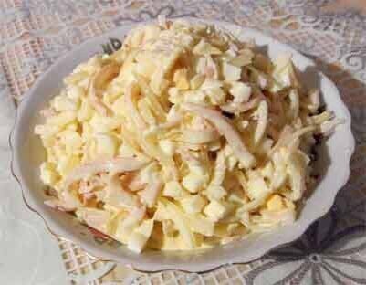 Салат из кальмаров с сыром 🔸на 100грамм - 99.09 ккал🔸Б/Ж/У - 10.12/4.3/5.17🔸 Ингредиенты: Кальмары - 300 г Яйцо - 4 шт Сыр - 70 г Лук - 1 шт Яблоки - 2 шт Йогурт натуральный - 100 г Соль, перец - по вкусу Горчица - 1 ст. л Приготовление: Сварить вкрутую яйца, отделить белки от желтков и натереть белки на крупной терке. Очищенные яблоки и сыр натереть на крупной терке. Отварить кальмары и нарезать соломкой. Сладкий лук нарезать тонкими кольцами. Грецкие орехи обжарить на сухой сковороде и крупно порубить. Соединить все ингредиенты, посолить, поперчить и заправить салат соусом из йогурта с горчицей и измельченного желтка. Приятного аппетита!