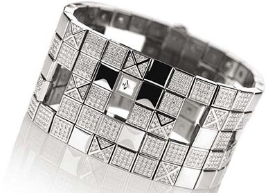 Изысканное украшение, которое так же, как и Graff Diamonds Hallucination, является произведением скорее ювелирного, чем часового искусства. Они изготовлены в виде плоского браслета из квадратных элементов, состоящих из белого золота и украшенных россыпью из более чем 500 бриллиантов, а также кристаллами оникса. Циферблат на них имеет крайне небольшой размер – он закреплён в качестве одного из звеньев браслета и оснащён сапфировым стеклом. Стоит отметить, что на текущий момент это самые дорогие швейцарские часы.