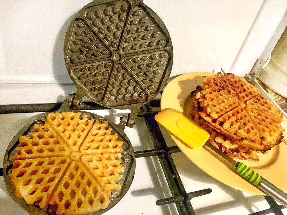 У вас сохранились вафельницы для плиты? У меня-да, и вафельница есть, и орешница. Пользуюсь еще со времен СССР, а они, как новенькие. Рецепт 1. Картофельные вафли Первый рецепт, это то, что я готовила сегодня - немного поэкспериментировала и приготовила не обычные сладкие вафли на десерт, а картофельные. Примерный набор продуктов для блюда: Натираем картофель на мелкой тёрке. Добавляем муки (ориентируйтесь на консистенцию) и остальные ингредиенты. Всё перемешиваем и выпекаем при помощи вафельницы. Моя семья довольна)) К слову, это блюдо вполне можно выпекать и на электровафельнице. Рецепт 2. Сладкие "Орешки" А вот рецепт для орешницы (по-моему, она так и называется – форма для печенья «Орех»). Она у меня тоже древняя, для плит, я даже не знаю, сколько десятилетий пеку в ней «орешки», так как это одно из любимейших блюд моих детей. Они хоть и взрослые, но те еще сладкоежки. Тем более, что сейчас у нас газовая плита, а на такой печь получается ну очень быстро. Если у вас есть такая