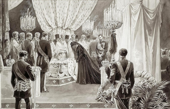 Издавна уход в мир иной членов правящих династий сопровождался особыми ритуалами. В допетровские времена перед кончиной царь принимал постриг в монашескую схиму. О смерти монарха извещал колокольный звон, по которому во дворец приходили бояре, родные и близкие покойного. После прощания гроб переносился в домовую церковь, где над обряженным в царское одеяние усопшим круглосуточно читалась Псалтирь и дежурили священнослужители и бояре.
