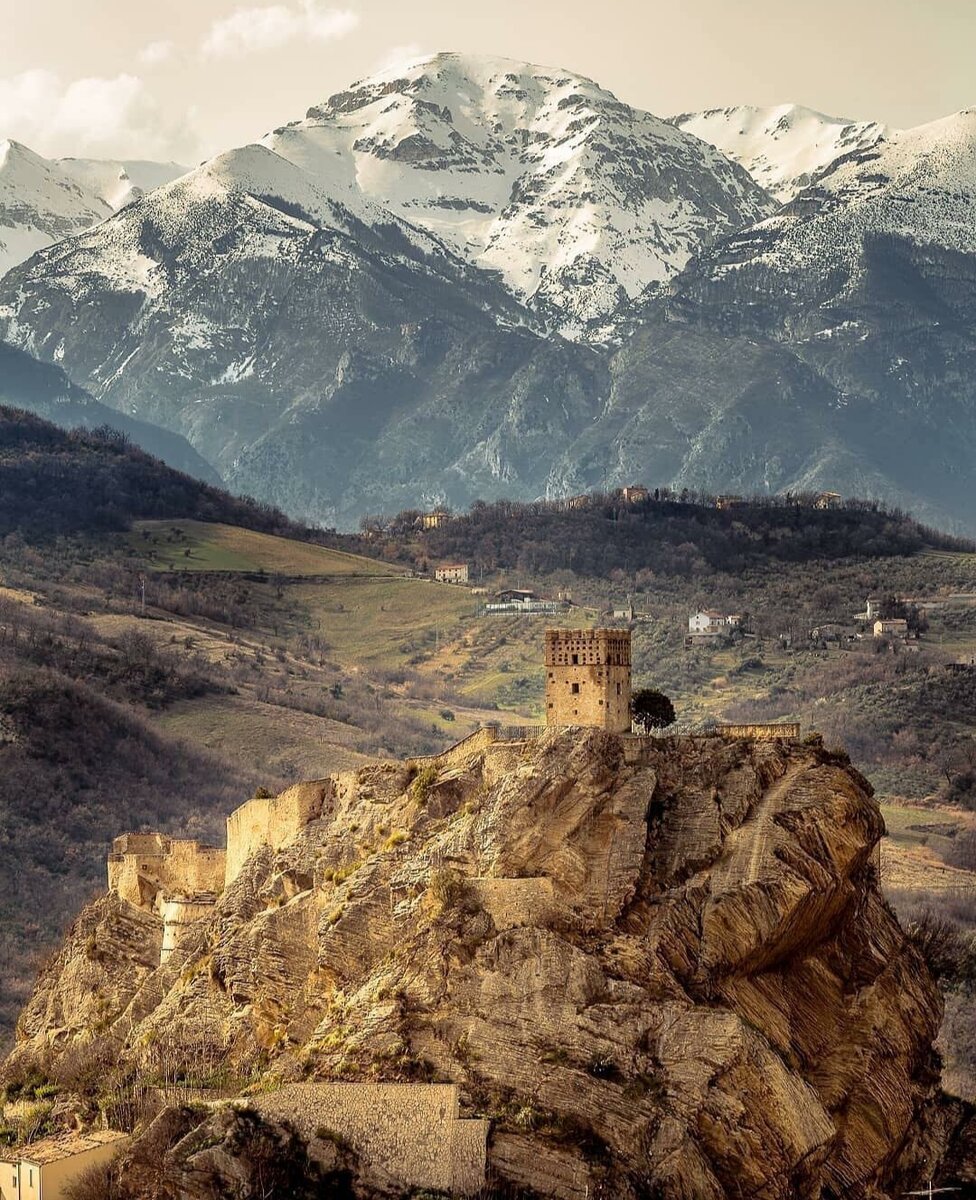 В небольшом городке Роккаскаленья, на юге Абруццо ( Италия), есть чудесный замок🏰 Расположившись на вершине скалы, он величественно доминирует над средневековым поселком. Начиналось всё со строительства сторожевой башни для защиты от врагов... Замок расположен в красивой долине у основания горы Маелла. Привлекает туристов красота самого замка, и немного жутковатая легенда о нём. В 17 столетии хозяином замка был барон Корво де Корвис, жестокий самодур. Он устанавливал непомерные налоги, наказывал, кидал в подземелье, казнил за малейшую провинность своих подданных. Мало того, ещё и придумал "Право первой ночи ", когда невеста должна была первую брачную ночь провести не с мужем, а в замке с бароном. Местный священник возмутился этим законом и в наказание был казнен и повешен у городских ворот в устрашение для непокорных. Но всех запугать нельзя. И нашёлся смельчак, который решился на подвиг ради своей любимой. Он переоделся в женское платье и поднялся в замок вместо новобрачной. Баро