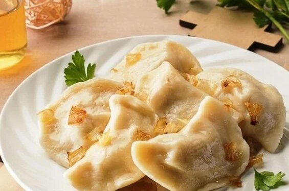 Вареники с картошкой и квашеной капустой — постное диетическое блюдо, которое не несет вреда для организма. Оно сытное, подходит для сервировки стола в любые праздники. Кислая капуста придает вареникам необычный вкус. Основные сведения На приготовления постного блюда необходимо выделить час: Пищевая ценность Калорийность блюда на 100 г — 180 ккал. Соотношение БЖУ на 100 г: Технология приготовления Чтобы приготовить тесто для вареников, необходимо запастись следующими ингредиентами: Как сделать тесто: Теперь можно приступать к приготовлению начинки. Что для этого нужно: Как сделать начинку: Начинка готова. Теперь можно приступать к лепке. Пошаговый рецепт: Готовые вареники достаются из воды, помещаются в глубокую емкость, к ним добавляется луковая поджарка. Блюдо подается к столу горячим.
