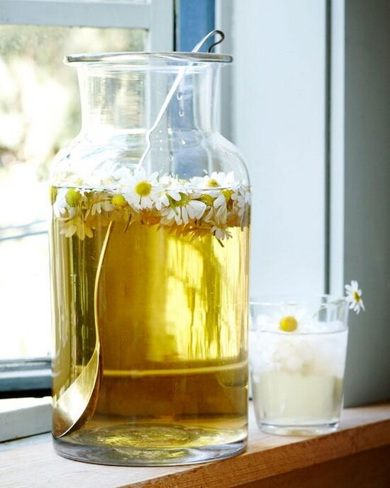 Ромашковый чай или отвар – известное успокоительное средство, которое рекомендуют при стрессе. Но, оказывается, ромашка хорошо действует не только на нервы, но и на кожу. В составе цветка есть кумарин, который активизирует естественные процессы восстановления клеток для борьбы с микроповреждениями и постакне. Каротин способствует выравниванию рельефа кожи, а каприловая кислота и эфирные масла успокаивает. И что самое приятное – отвар из ромашки подходит для кожи любого типа, а применять его можно круглый год. Если вы живете в городе и у вас нет возможности собирать и высушивать ромашку самостоятельно, загляните в аптеку. Там продаются засушенные цветки или порошок ромашки. Возьмите столовую ложку цветков, залейте стаканом кипятка и подержите на водяной бане около получаса. Затем остудите и процедите. Полученная жидкость – отличный тоник для кожи шеи и лица. Также его можно заморозить в формах для льда и протирать кожу ромашковыми кубиками с утра, чтобы справиться с отеками и кругами