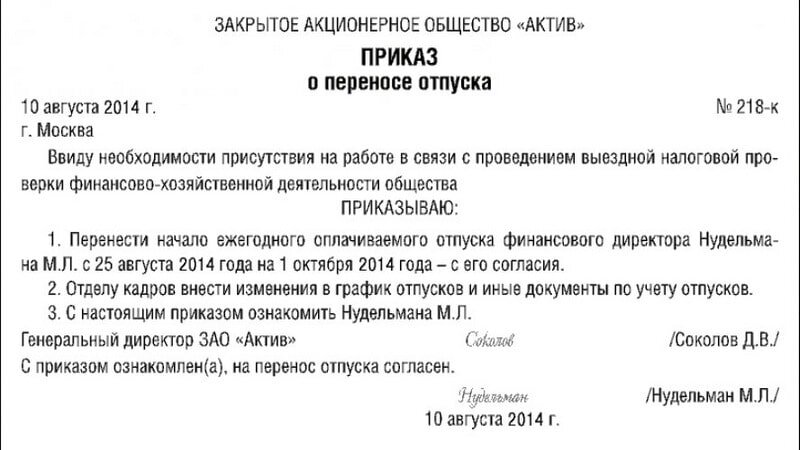 Как оформляется перенос ежегодного оплачиваемого отпуска сотрудника!