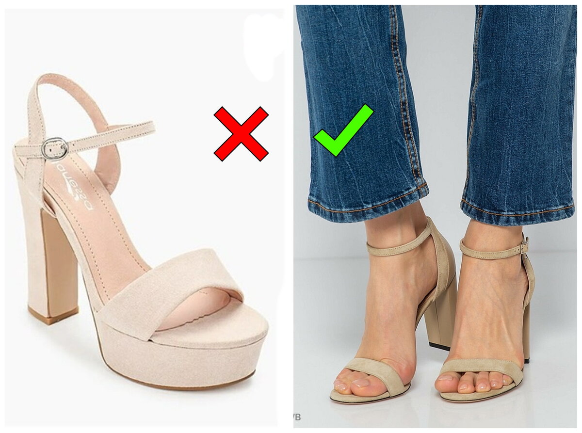 Сандалии на фото слева могут быть бесконечно удобными, но ими можно бесповоротно испортить весь ваш образ. Массивные сандалии актуальны, но они явно визуализируют спортивный стиль - как на фото справа. Такая модель популярна уже не первый сезон, и вряд ли быстро выйдет из моды - как раз благодаря своему удобству.