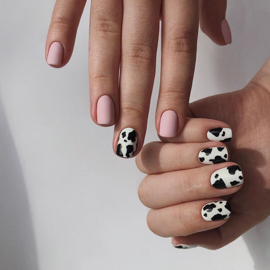 В душе все хотят леопард, но у мастера просят коровку =) Автор: solovey_nail_art Розовый Klio Professional, Камуфлирующая база Creamy pink Или альтернативный вариант в другом бюджете