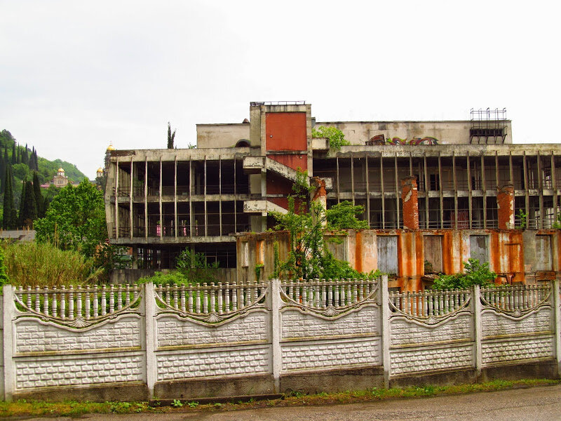 Брошенных домов, разваливающихся зданий и заводов, зарастающих травой стен полно в каждом городе, в том числе и Сухуми. Больше всего их на юге (Ткварчели, Гали, Очамчира), несколько меньше - в Гагре, Пицунде и Новом Афоне.
