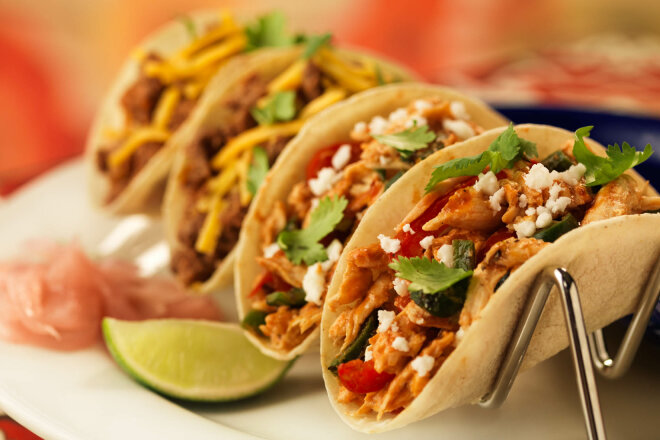 - ШАГ 22 Можно подавать такос с курицей и болгарским перцем – традиционное мексиканское блюдо.