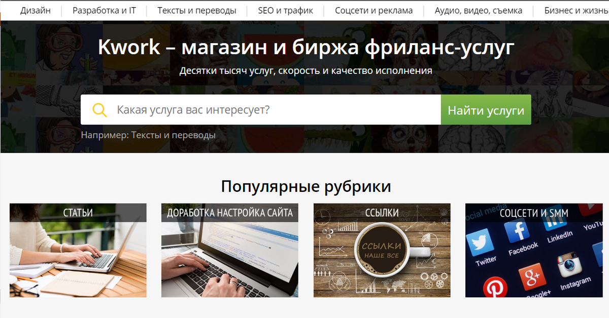 Всем привет! Сегодня я познакомлю вас с моей новой находкой. Хотя скорее всего многие из вас уже слышали об этом проекте. Онлайн фриланс или удаленка становится всё более популярной и актуальной. Я изучаю разные направления и пробую разные варианты. Т.е. тут как в инвестировании, не стоит складывать все яйца в одну корзину. Ведь в любом деле вы инвестируете самый главный ресурс - время! Но! Это мое личное мнение и моя личная позиция. А как и что делать, решать вам! Все мы люди разные с разными возможностями и позициями. И может кому-то лучше сосредоточиться на одном проекте и инвестировать всё своё свободное время в 1 проект. Это было такое философское отступление... А теперь о деле... Сегодня мы поговорим о проекте KWORK. KWORK - это онлайн платформа для фрилансеров и работодателей. Фрилансеры могут найти себе работу по души. А рекламодатели - подходящих исполнителей. Я пробую эту платформу в роли исполнителя, т.е. продавца своих услуг. Во-первых, регистрация на проекте очень проста