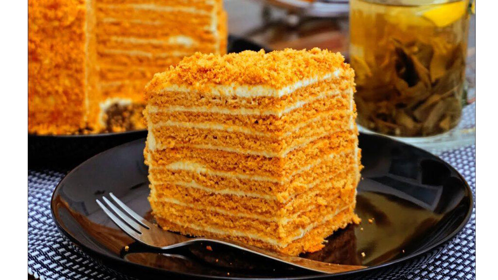 Торт получается с ярким медовым вкусом, но в отличие от классического не требует раскатки коржей. Продукты Для теста: Яйца - 2 шт. Сахар - 3 ст. л. Мёд (жидкий) - 3 ст. л. Сода пищевая - 1 дес. ложка Мука - 1,5-2 стакана Для крема: Сметана жирностью 24% - 600 г Сахарная пудра - 0,5 стакана