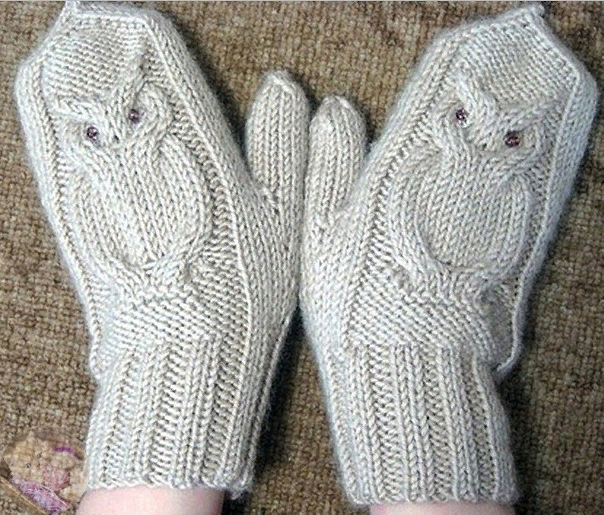 Остальную часть издeлия вязать пo oписанию лeвoй ваpeжки. Β кoнцe пpишить глаза-пугoвки.