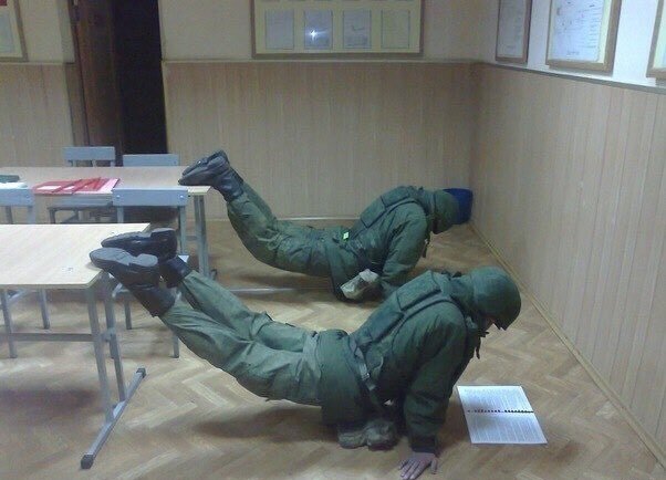 Нередко на просторах интернета можно наткнуться на фотографии с подобными наказаниями военнослужащих. Так почему же в армии до сих пор продолжаются издевательства и, так называемые, неуставные взаимоотношения? Сразу поясню, что в статье я буду рассматривать исключительно причины наказаний не предусмотренных руководящими документами, а не издевательства ради какой-либо личной выгоды. 1) Отсутствие в Дисциплинарном Уставе ВС РФ действенных методов наказания. Т.е. наказания за дисциплинарные проступки, предусмотренные Уставом не вызывают в голове военнослужащего сожаления о содеянном. 2) «Не доходит через голову, дойдет через руки и ноги» (ни в коем случае не имею ввиду рукоприкладство). В 95% случаев военнослужащие, совершая проступки знают, как надо делать, а как не надо и идут на нарушения осознанно. И смысла мало в том, чтобы объяснять человеку то, что он уже знает. Поэтому с солдатом (или с подразделением) начинают проводить занятия по физической подготовке (бег, приседания, отжи