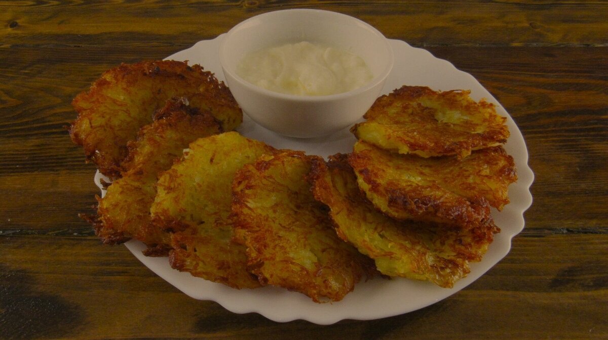 Беларусская кухня. Дранники без яиц и муки. Готовим быстро и вкусно. Ингредиенты Шаг 1. Нам понадобится терка, с маленькими зубчиками, и глубокая миска. Для начала натираем лук, он не даст картошке окислиться и потемнеть. Сюда же натираем картофель и перемешиваем. Шаг 2. Далее сливаем лишнюю жидкость через дуршлаг. Добавляем пол чайной ложки соли, тщательно перемешиваем. Это будет тесто для дранников. Шаг 3. В сковороду наливаем подсолнечное масло, хорошо разогреваем. При помощи ложки выкладываем драники на сковороду, в высоту примерно 6-7 миллиметров. Шаг 4. Обжариваем до румяной корочки, на среднем огне. Шаг 5. Выкладываем готовые драники на бумажные полотенца, чтобы убрать лишний жир. Вот и всё, наше блюдо из беларусской кухни готово! Приятного аппетита!