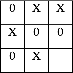 all_div.onclick = e => { if (e.target.id[3] != "_") { if (document.getElementById(e.target.id).innerHTML != "0" && document.getElementById(e.target.id).innerHTML != "X") { if (hod % 2 == 0) { document.getElementById(e.target.id).innerHTML = "0"; } else { document.getElementById(e.target.id).innerHTML = "X"; } hod++; } } if ((document.getElementById('div0').innerHTML == 'X' && document.getElementById('div1').innerHTML == 'X' && document.getElementById('div2').innerHTML == 'X') || (document.getElementById('div3').innerHTML == 'X' && document.getElementById('div4').innerHTML == 'X' && document.getElementById('div5').innerHTML == 'X') || (document.getElementById('div6').innerHTML == 'X' && document.getElementById('div7').innerHTML == 'X' && document.getElementById('div8').innerHTML == 'X') || (document.getElementById('div0').innerHTML == 'X' && document.getElementById('div3').innerHTML == 'X' && document.getElementById('div6').innerHTML == 'X') || (document.getElementById('div1').innerHTML == 'X' && document.getElementById('div4').innerHTML == 'X' && document.getElementById('div7').innerHTML == 'X') || (document.getElementById('div2').innerHTML == 'X' && document.getElementById('div5').innerHTML == 'X' && document.getElementById('div8').innerHTML == 'X') || (document.getElementById('div0').innerHTML == 'X' && document.getElementById('div4').innerHTML == 'X' && document.getElementById('div8').innerHTML == 'X') || (document.getElementById('div2').innerHTML == 'X' && document.getElementById('div4').innerHTML == 'X' && document.getElementById('div6').innerHTML == 'X')){ scorex++; scoreX.innerHTML = scorex; hod = 0; for (var i = 0 ; i < 9 ; i++) { document.getElementById(`div${i}`).innerHTML = ""; } } if ((document.getElementById('div0').innerHTML == '0' && document.getElementById('div1').innerHTML == '0' && document.getElementById('div2').innerHTML == '0') || (document.getElementById('div3').innerHTML == '0' && document.getElementById('div4').innerHTML == '0' && document.getElementById('div5').innerHTML == '0') || (document.getElementById('div6').innerHTML == '0' && document.getElementById('div7').innerHTML == '0' && document.getElementById('div8').innerHTML == '0') || (document.getElementById('div0').innerHTML == '0' && document.getElementById('div3').innerHTML == '0' && document.getElementById('div6').innerHTML == '0') || (document.getElementById('div1').innerHTML == '0' && document.getElementById('div4').innerHTML == '0' && document.getElementById('div7').innerHTML == '0') || (document.getElementById('div2').innerHTML == '0' && document.getElementById('div5').innerHTML == '0' && document.getElementById('div8').innerHTML == '0') || (document.getElementById('div0').innerHTML == '0' && document.getElementById('div4').innerHTML == '0' && document.getElementById('div8').innerHTML == '0') || (document.getElementById('div2').innerHTML == '0' && document.getElementById('div4').innerHTML == '0' && document.getElementById('div6').innerHTML == '0')){ scoreo++; scoreO.innerHTML = scoreo; hod = 0; for (var i = 0 ; i < 9 ; i++) { document.getElementById(`div${i}`).innerHTML = ""; } } }