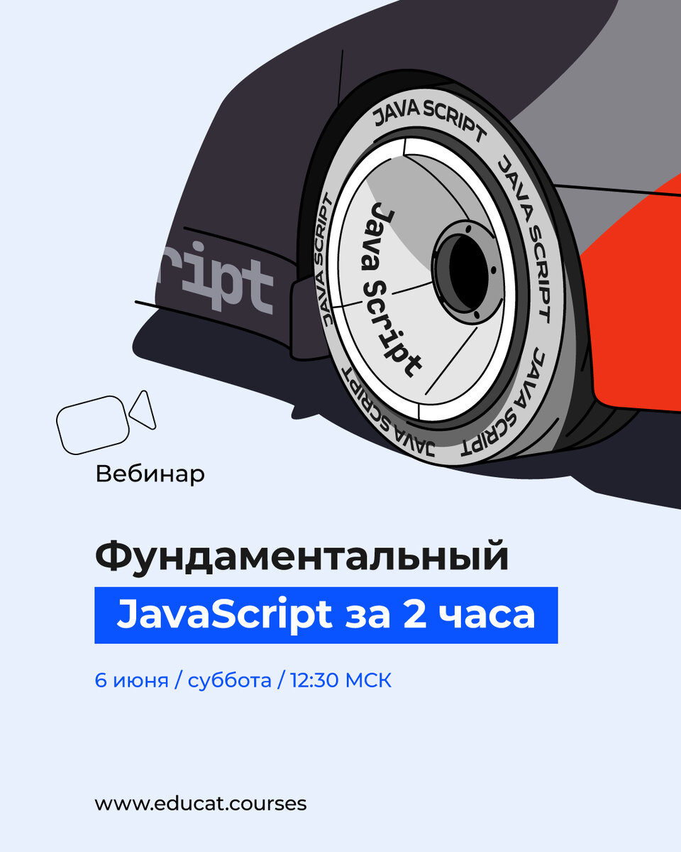 educat.courses Приглашаем всех на БЕСПЛАТНЫЙ видео курс онлайн-школы Educat “Фундаментальный JS за 2 часа”. Курс состоит из двух частей, первая часть которого пройдет завтра, 6 июня в 12:30 мск. В прямом эфире мы изучим практически все моменты в языке JavaScript — переменные, массивы, циклы, условные операции, создание объектов, работу с событиями и многое другое. Прохождение этого видео курса даст такие понятия как