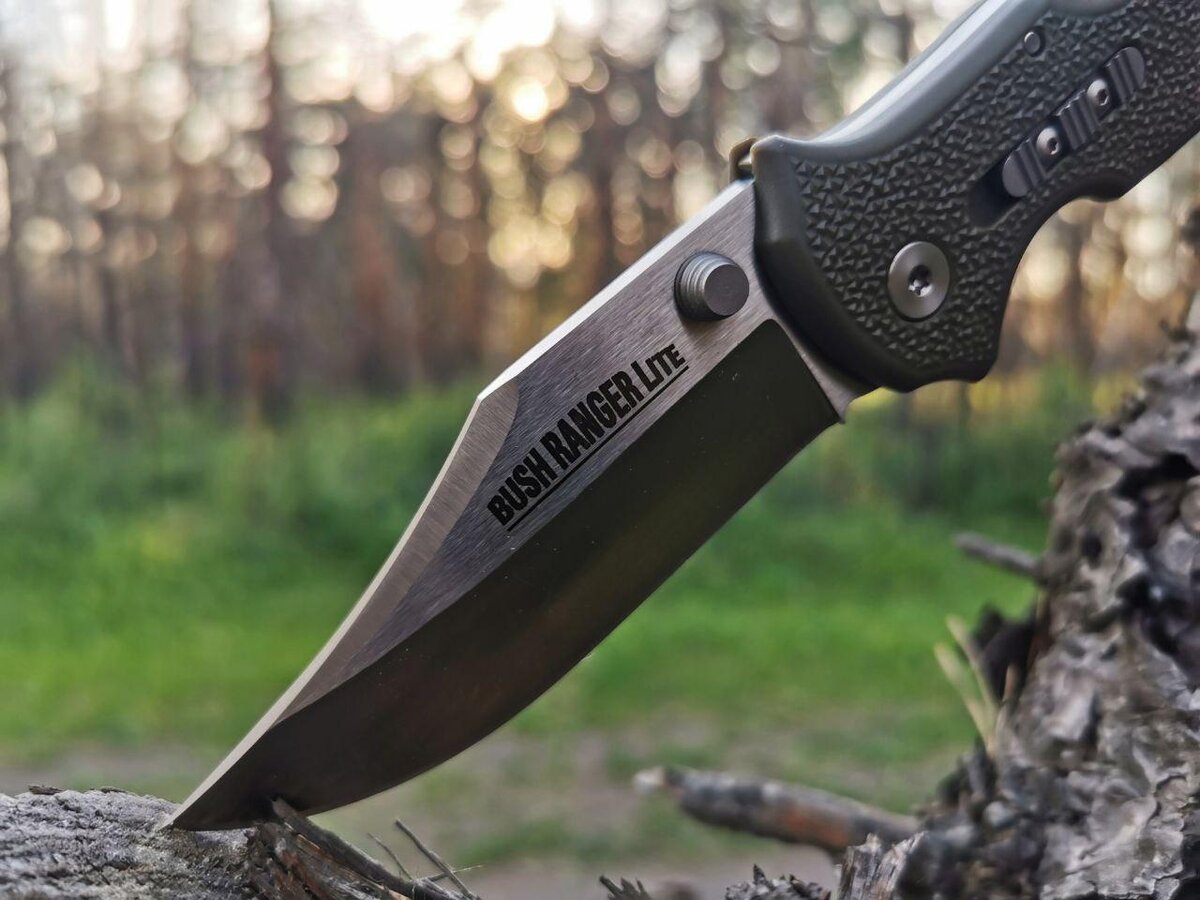 Bush ranger lite это бюджетная версия модели 2018 года, прилично потерявшая в цене, но не в весе. Приятная тяжесть этого ножа будет в радость обладателям средних и больших по размеру ладоней. Изгибы рукояти образуют гарду и раскладывают пальцы по своим удобным местам, оказывая поддержку крючковатым хвостом. Фактура под мелкозернистый щебень ощущается в руке удобно, но натирает голую руку при долгой, силовой работе.