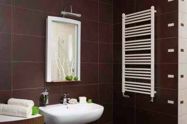 Эксперты советуют при наличии просторной ванной приобретать достаточно габаритные изделия в виде «лесенки». Такая форма позволяет обогревать помещение, просушивать длинные халаты и банные полотенца, размещать до десятка вещей одновременно.