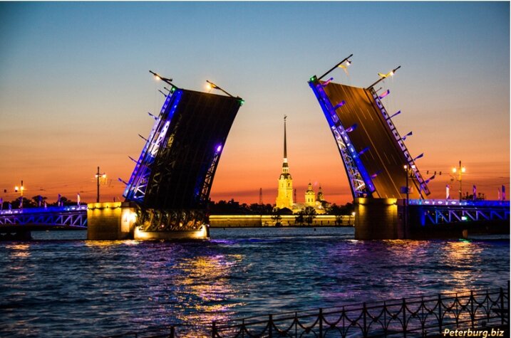 Благовещенский мост является первым разводным мостом в истории Петербурга. Его построили в 1840 году из чугуна, и именно он задал направление подъемных мостовых конструкций в городе. ... Его длина насчитывает аж 2884 метра, однако в отличие от упомянутых выше его конструкция не является разводной