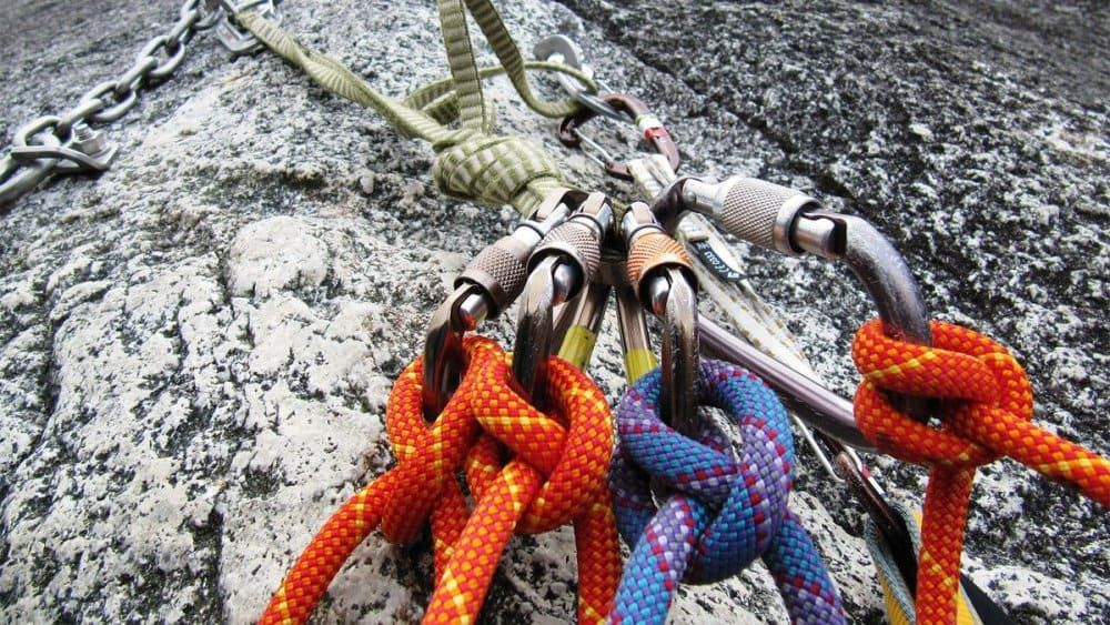 Основными элементами для скалолазов и альпинистов являются узлы, они должны быть правильно выполнены, чтобы во время подъема спортсмен был уверен в своей безопасности. Большая часть альпинистских сплетений берет свое начало в мореходстве, отсюда и морские названия. Матросы взбирались на мачты и крепили паруса так, чтобы они выдерживали огромный напор ветра, заставляющего судно двигаться вперед. С того времени требования не изменились. Всего насчитывается более десятка основных узлов в альпинизме.