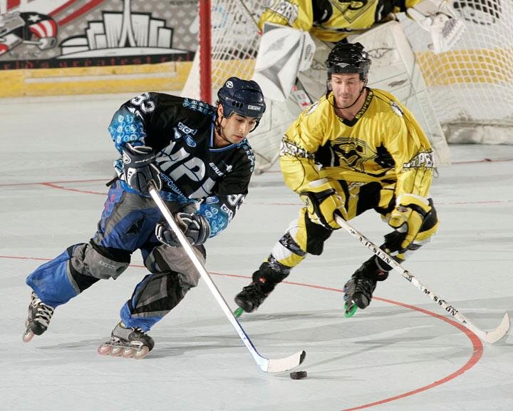 Инлайн-хоккей (не путать с онлайн-хоккеем), это по сути дела тот же самый знакомый нам хоккей, только вместо коньков обычных - коньки роликовые. Соответственно и покрытие вместо льда тоже другое. Это позволяет заниматься данным видом спорта странам, где с ледовыми аренами большие проблемы. Но не думайте, что лидеры в этом виде спорта - команды из Южной Америки или Африки. Законодатели моды здесь всё те же, что и в обычно хоккее.