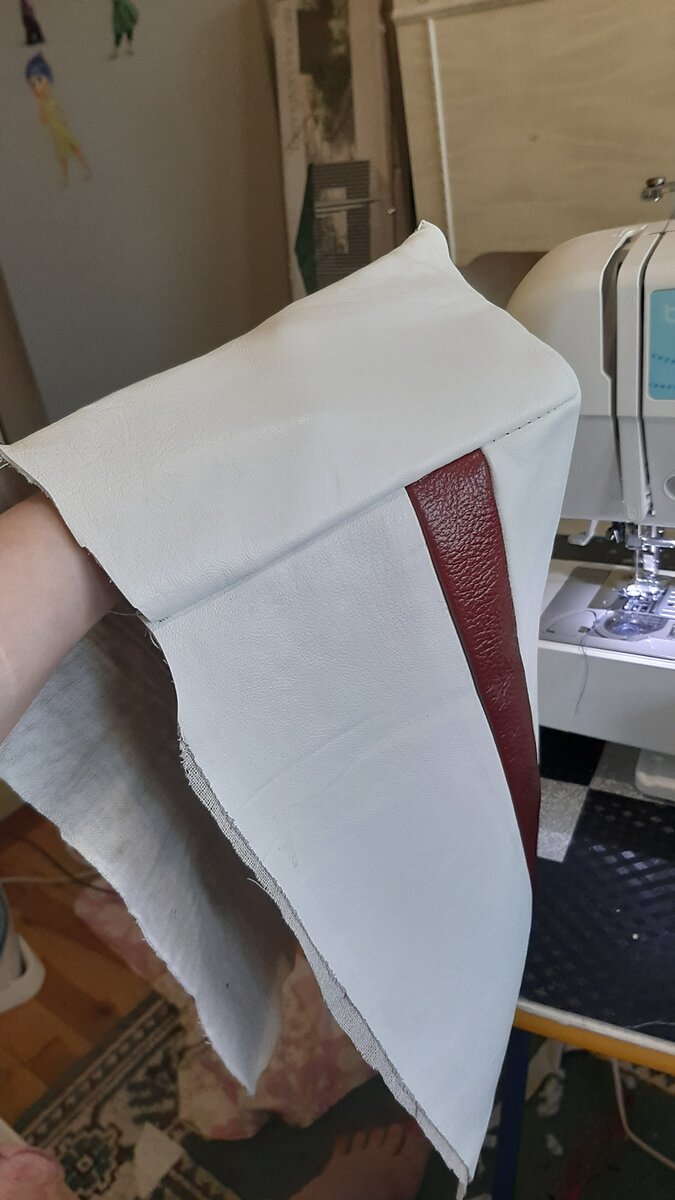 Сумка из кожаных сапожек Сегодня я вам покажу как можно из ненужных сапожек сшить себе сумочку,да да,именно,можно сделать из старой обуви вполне интересные вещи.... Обрезаем голенища и режим их на полосы по швам,потом я нашла кусочки контрастной кожи и сделала полотно чередуя полоски и просточила их на машинке,потом замачиваем полотно в горячей воде ,слегка отжимаем и простукиваем места швов молоточком,далее горячим утюжком разглаживаем заготовку,и я для придания жесткости приклеила утюгом специальную клеевую ткань к изнанке.потом вырезаем два одинаковых прямоугольника и пришиваем бока нашей сумочке,получается у нас вот так То же самое делаем со второй стороной,и делаем складочку и прошиваем ее ,вот так Потом я взяла ткань с клеевой основой и горячим утюгом проклеила дно и бока сумочки для придания жесткости. Далее пришиваем подкладку,лицо к лицу и выворачиваем ,прострачиваем сверху шов,и вуаля Получается вот такая сумочка Такой клатч у меня получился,а если приделать ремешок то получ