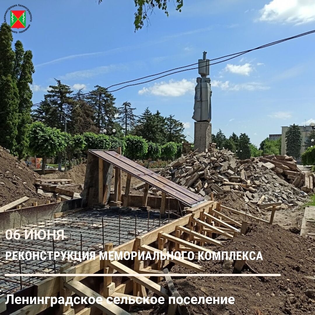 В рамках национального проекта «Жилье и городская среда» в ст.Ленинградской производятся работы по реконструкции мемориального комплекса «Вечный огонь». 06 июня была проведена примерка гранитных плит с именами станичников, геройски павших на полях сражений в Великой Отечественной войне. По обе стороны от мемориала, на аллеях Славы будут установлены новые каменные плиты с начертанными на них именами всех станичников, геройски павших на полях Великой Отечественной войны 1941 -1945 годов, воинов-интернационалистов и ликвидаторов аварии на Чернобыльской АЭС. На старых тумбах было указано 1616 фамилий, после обновления на гранитных плитах будут высечены фамилии 7822 наших земляков. В целом привычные очертания мемориального комплекса останутся прежними. Работы по реконструкции объекта будут завершены в сентябре.
