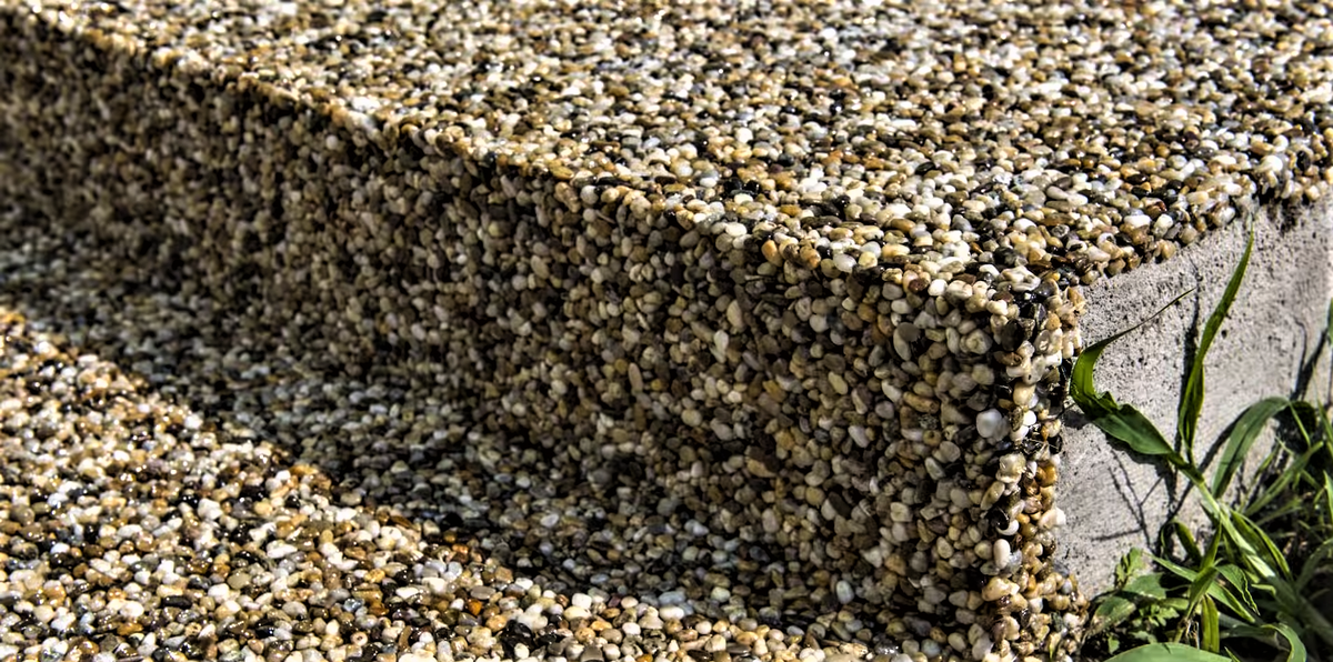 Технология укладки проста. В качестве основного компонента используется мелкий натуральный камень или по-простому галька. В качестве вяжущего используется состав на основе обычной эпоксидной смолы. Два этих компонента загружаются в ведро и перемешиваются строительным миксером. Пропорции вяжущего и заполнителя зависят от фракции гальки и составляют примерно 0,5 кг вяжущего (клея) на 10 кг гальки (камня).