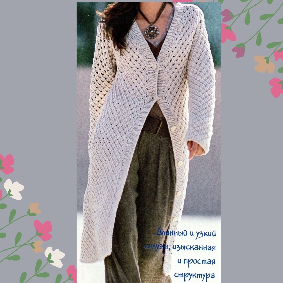 Такое элегантное пальто со структурным узором в классическом стиле понравится многим вязальщицам.