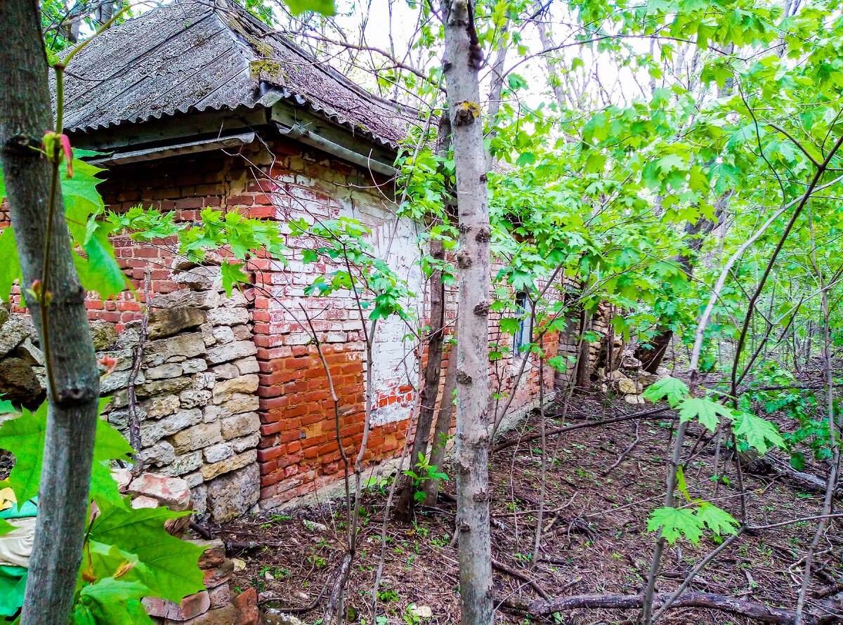 Мы с Александром, автором канала "Мир прошлого" продолжали пробираться по зарослям в поисках заброшенных мест. Лес был вокруг довольно густой, даже какие-то лианы вились на деревьях. Такое ощущение, что это были тропические джунгли, а не окраина деревни Липецкой области, которая заросла лесом. Вскоре сквозь заросли заметили заброшенный дом, стоящий в лесу. Здесь уже много лет никто не живет и даже не появляется. Природа взяла свое назад. Все, что некогда было обжито человеком, поросло густым лесом. А дом еще пока стоит. У него и крыша вроде цела, и стены. Но на самом деле такая хорошая сохранность заброшенного дома нам показалась лишь на первый взгляд. Когда мы подошли к нему ближе, то увидели, что у здания рухнула часть стены. Рядом с домом рос высокий и толстенный дуб. Он, наверняка, помнит всех жителей этого дома. Когда в доме жили люди, таких зарослей вокруг не было. А дуб стоял. И после трудового дня люди отдыхали под его сенью. Дверь в этот брошенный дом была открыта. Мы решили з