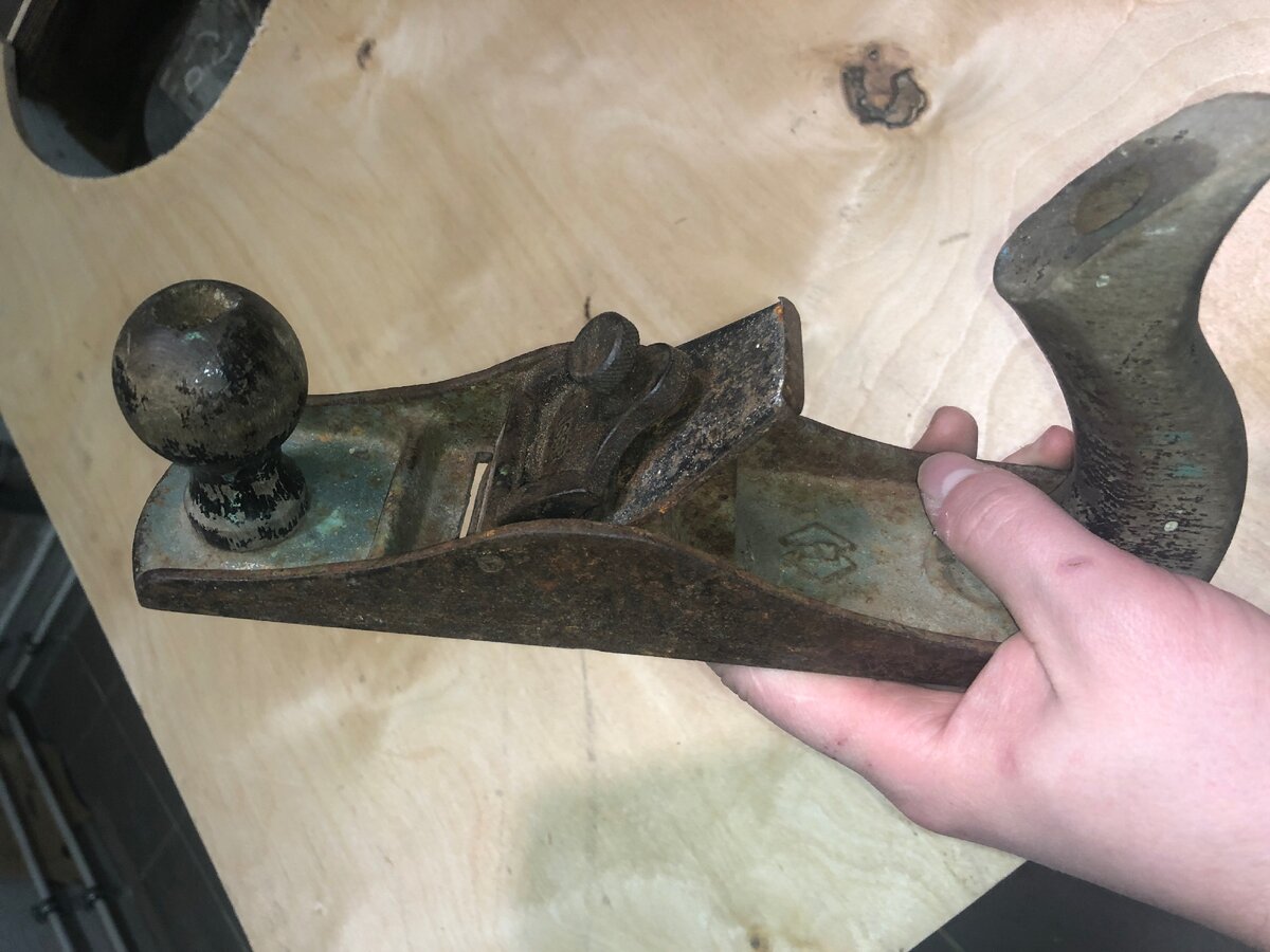 Итак все началось пару месяцев назад когда я в очередной раз заехал на пункт приема метала. И побродив 10 минут наткнулся на топор который я сделал раньше и вот этот рубанок. Это было что то, по правде сказать хозяин сначала зажал мне его продавать, потом цену заломил как за новый, но в итоге договорились на 100 рублей. )))) Что приятно.