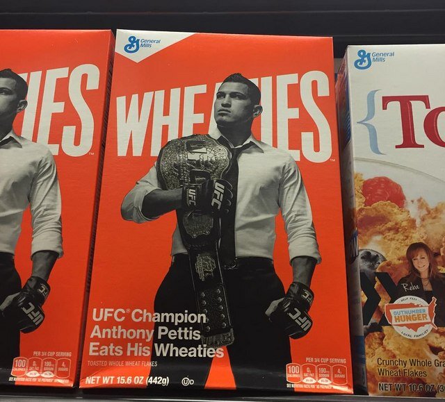 Сразу скажу, что речь пойдёт не о контракте UFC c Reebok. Российский боец Олег Тактаров когда-то стал рекламным лицом пива "Охота". Интересно узнать, что рекламируют главные звезды UFC? Тогда читайте! Энтони Петтис Во времена правления в лёгком дивизионе "Шоутайм" был один из главных звёзд промоушена. Благодаря своему яркому образу и зрелищному стилю боя Петтиса даже пригласили рекламировать хлопья. Хабиб Нурмагомедов Вы бы никогда не догадались, что рекламирует Хабиб. Но это, наверное, знает каждый. Хабиб является рекламным лицом энергетического напитка "Gorilla". На деньги с рекламного контракта Нурмагомедов даже открыл новый промоушен с одноимённым названием "Gorilla FC". Дональд Серроне Ни для кого не секрет, что Дональд очень любит пить пиво. Часто он появляется с этим напитком на глазах у зрителей - на турнирах в качестве зрителя или на пресс-конференциях. Знаменитый бренд "Budweiser" не растерялся и поместил фотографию Дональда на свои банки, упомянув все его рекорды в UFC