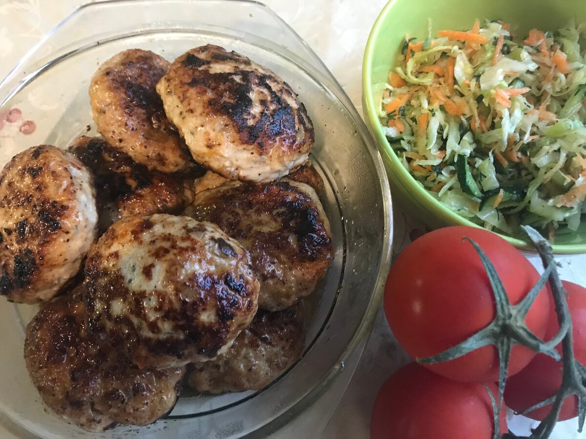 Доброго всем дня и отличного настроения, дорогие читатели!!! Давайте вместе приготовим быстрый, легкий и невероятно вкусный ужин за пол часа... Котлетки из индейки - любимое диетическое блюдо без лишней возни + какой-нибудь любимый вами овощной салат. Рекомендую обойтись на ужин без гарнира и хлеба, также можете готовить эти чудо-котлетки без жиров, например, в аэрогриле. Тогда ваш ужин будет на 100% здоровым и полезным. Готовим продукты: Поехали! Лук режем мелко, насколько возможно. Отправляем на сковороду бланшировать. Морковь натираем на крупной терке. Добавляем к луку. Пока лук и морковь обжаривается достаем фарш, яйцо, сметану, соль, перец, приправы, - все смешиваем. Сюда же добавляем готовые овощи со сковороды. Формируем из полученного хорошо отбитого фарша (фарш необходимо отбить, чтобы вышел воздух, тогда любые котлеты будут сочные и нежные) и жарим. Вот и все, готово! Таким же способом можно готовить куриные котлетки. Этот способ о