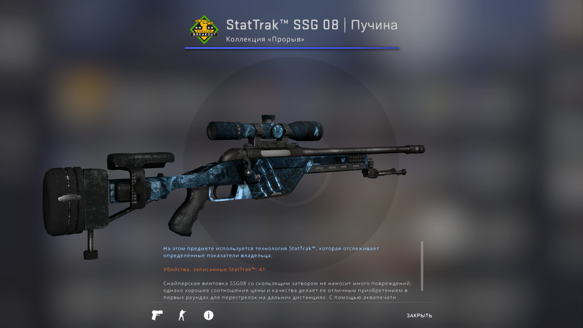 Всем привет! Сегодня я составил вам топ 5 красивых скинов (сам использую их), также они еще и бюджетные, что делает их более доступными для простых игроков, которые хотят совместить красоту и бюджетность. ********************************** Дата написания цен: 07.06.2020 ********************************** 1. SSG 08 | Пучина Износ: После полевых испытаний, у меня StatTrak™ Цена: Без StatTrak™: 30,68 pуб. С StatTrak™: 78,60 pуб. ------------------------------------------- Этот скин мне очень понравился, так как я люблю пострелять с "Мухи", давно хотел себе подобный. Он смотрится хорошо и качественно, не смотря что это износ после полевых испытаний. ------------------------------------------- 2. AK-47 | Элитное снаряжение Износ: Поношенное, у меня StatTrak™ Цена: Без StatTrak™: 91,82 pуб. С StatTrak™: 362,85 pуб. ------------------------------------------- Тут тоже самое, несмотря на сам износ, качество сохранилось. ------------------------------------------- 3. USP-S |