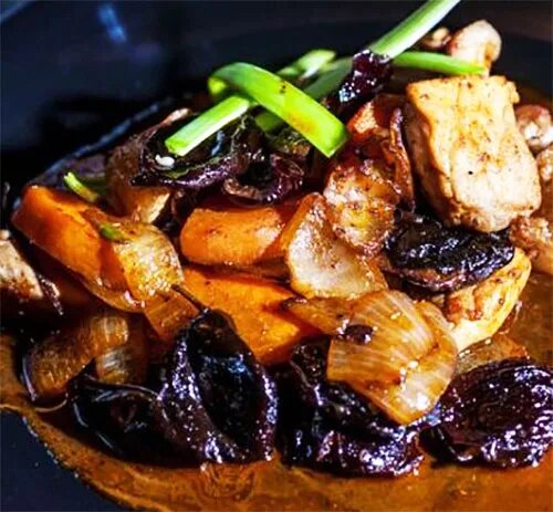 Тушёная курица отлично подойдёт к любому столу. Курица получается очень вкусной, а блюдо сытным. Чернослив добавит особую пикантность.