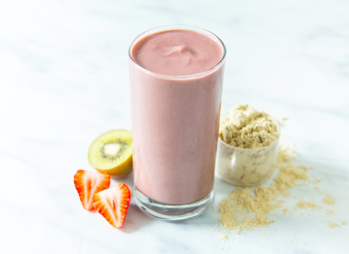 Протеиновая составляющая коктейля состояла из сывороточного протеина, казеина и лейцина.