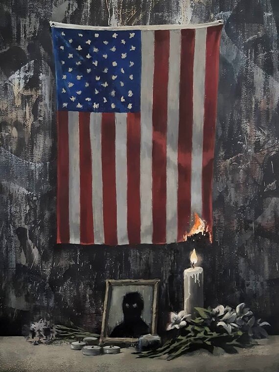 Бэнкси опубликовал в Instagram свою новую работу, посвященную проблеме расового неравенства — на нее знаменитого уличного художника вдохновили непрекращающиеся массовые протесты в США. На картине изображен мемориал — портрет с темной фигурой в окружении цветов и свечей. Над ним возвышается флаг США, подожженный пламенем одной из свечей. В комментарии к публикации Бэнкси написал: «Сначала я думал, что должен заткнуться и слушать, что говорит о происходящем темнокожее сообщество. Но с чего бы? Это не их проблема, а моя. Темнокожее население подводит система. Система, созданная белыми. Как если бы сломанная труба затапливала соседей снизу. Они страдают из-за ущербной системы, но не их задача ее чинить. Они не могут — никто не впустит их в квартиру на верхнем этаже. Это проблема белых. И если белые ее не решат, кому-то придется подняться по лестнице и выбить дверь» Волна протестов поднялась в США после того, как в Миннеаполисе при задержании из-за действий полицейского погиб 46-летний афро