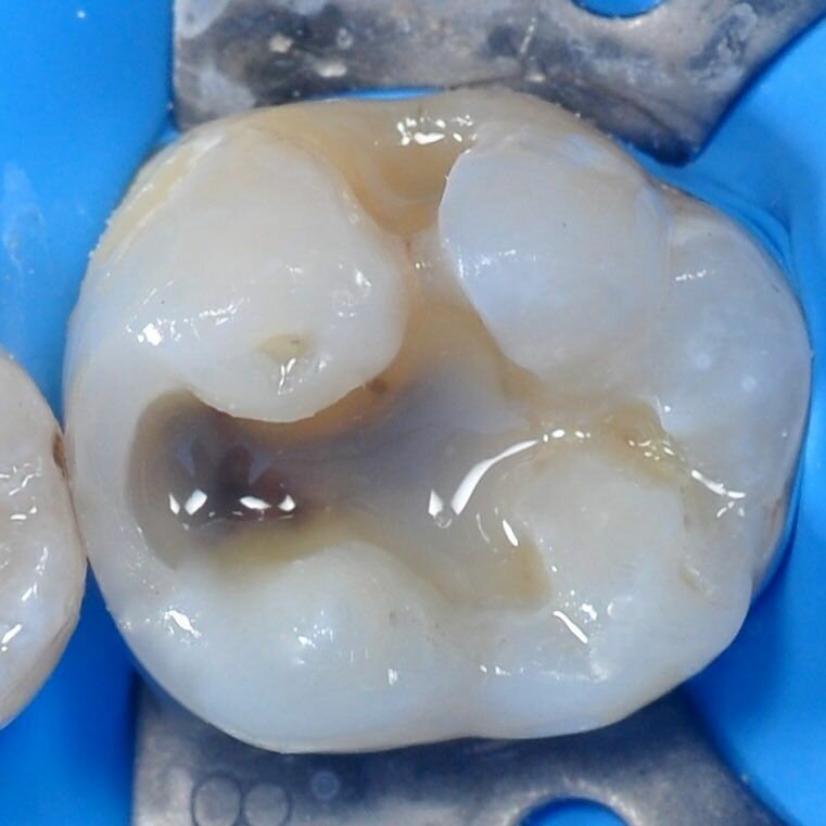 Начну с того,что кариес это- сложный, медленно текущий патологический процесс, протекающий в твёрдых тканях зуба и развивающийся в результате комплексного воздействия неблагоприятных внешних и внутренних факторов. При его возникновении повреждается сначала зубная эмаль, а затем, если не начать лечение, и дентин (твердая ткань зуба). Первый признак кариеса — темное пятно на эмали. Если игнорировать его появление, то пятно может увеличиться в диаметре, а затем патология распространяется глубже в ткань зуба, в результате чего образуется «дырка». На этой фотографии можно заметить все стадии развития кариеса. Развивается в результате комплексного воздействия неблагоприятных внешних и внутренних факторов. В начальной стадии развития кариес характеризуется очаговой деминерализацией неорганической части эмали и разрушением её органического матрикса. Особенно часто кариес развивается когда у человека недостаточно витаминов,например:когда человек мало ест творога,мяса,фруктов и овощей. Карие