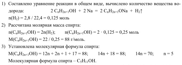 1. При взаимодействии 1,48 г предельного одноатомного спирта с металлическим натрием выделился водород в количестве, достаточном для гидрирования 224 мл этилена (н.у.). Определите молекулярную формулу спирта. Решение: 1) 2CnH2n+1OH + 2Na → 2CnH2n+1ONa + H2