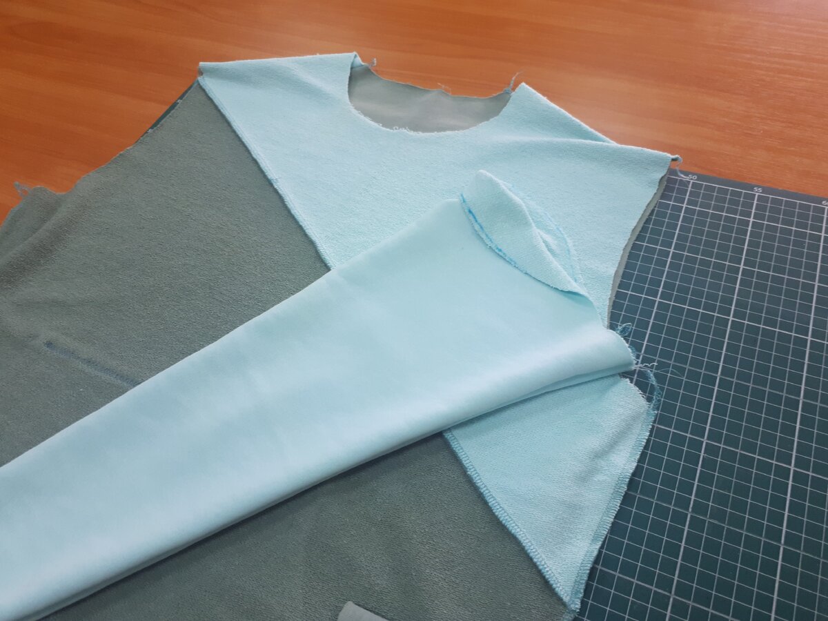 Вы читаете продолжение истории о том, как человек без опыта создает трикотажное изделие с помощью школы шитья PRO рукоделие. Первая часть https://zen.yandex.ru/media/id/5e9c3af46647a20c33192169/kak-novichku-sshit-trikotajnyi-kostium-chast-1-5ec105d2858edc1dba77392d Вторая часть https://zen.yandex.ru/media/id/5e9c3af46647a20c33192169/mojno-li-bez-opyta-sshit-kachestvennuiu-vesc-istoriia-novichka-chast-2-5ecaa7273982fe03e8f8c055 Продолжение истории. Рукава Рукава стачиваем начиная от подмышки. Потому что если к концу шва ткань «убежит» и соединится не равномерно – со стороны запястья этот нюанс можем без проблем устранить, уровняв срез ножницами. Если же подобное произойдет с другой стороны и швея попытается решить проблему аналогичным способом, то рукав будет перекошен. Далее соединяем рукав с тушкой изделия. Для этого выворачиваем обе детали на изнаночную сторону, рукав вставляем внутрь тушки и скалываем иголочками. Вначале соединяем по швам. Затем оставшееся пространство дел