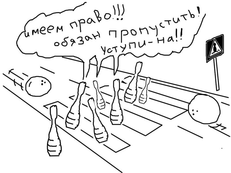 Кто ползумши вяло во левой колее, во мобилу глаголяши, на всяко ближнего глубоко положимши, тот есмь изверзждень блудливый и надобно е санями бульдозерными потолкати, да в канаву голимую бросати. Пущай в той канаве и глаголит, бес окаянный. Якоже кто на парковище супротив сваго места стоямши или два места занимамши яко дщерь беловолосая неразумная, по тому надобно катком проехати, да во лепешку раскатати, дабы мало места занимати буде. Аще кто ины полозья подрезамши, тому всяко зверско глумление учинити, на кол сажати, на кострище сжигати, полозья вставляти, четвертовати, рыло некошерно разукраси. Аще и се не споможе, то слово оному срамное изречи, животиной рогатой обозвати и перст серединный показати. Аще кто зело близко позади подъезжаючи, мигалом мигамши, да в гудело гудемши, бо невтерпеж ины же крутымя возомнимши, тот суть блудень диавольски и того с седалища стаскивати, ногами побивати, да мигало з гуделом во срам затолкати. Пущай оно там и гудити. Кто зимою сугробы з полозь