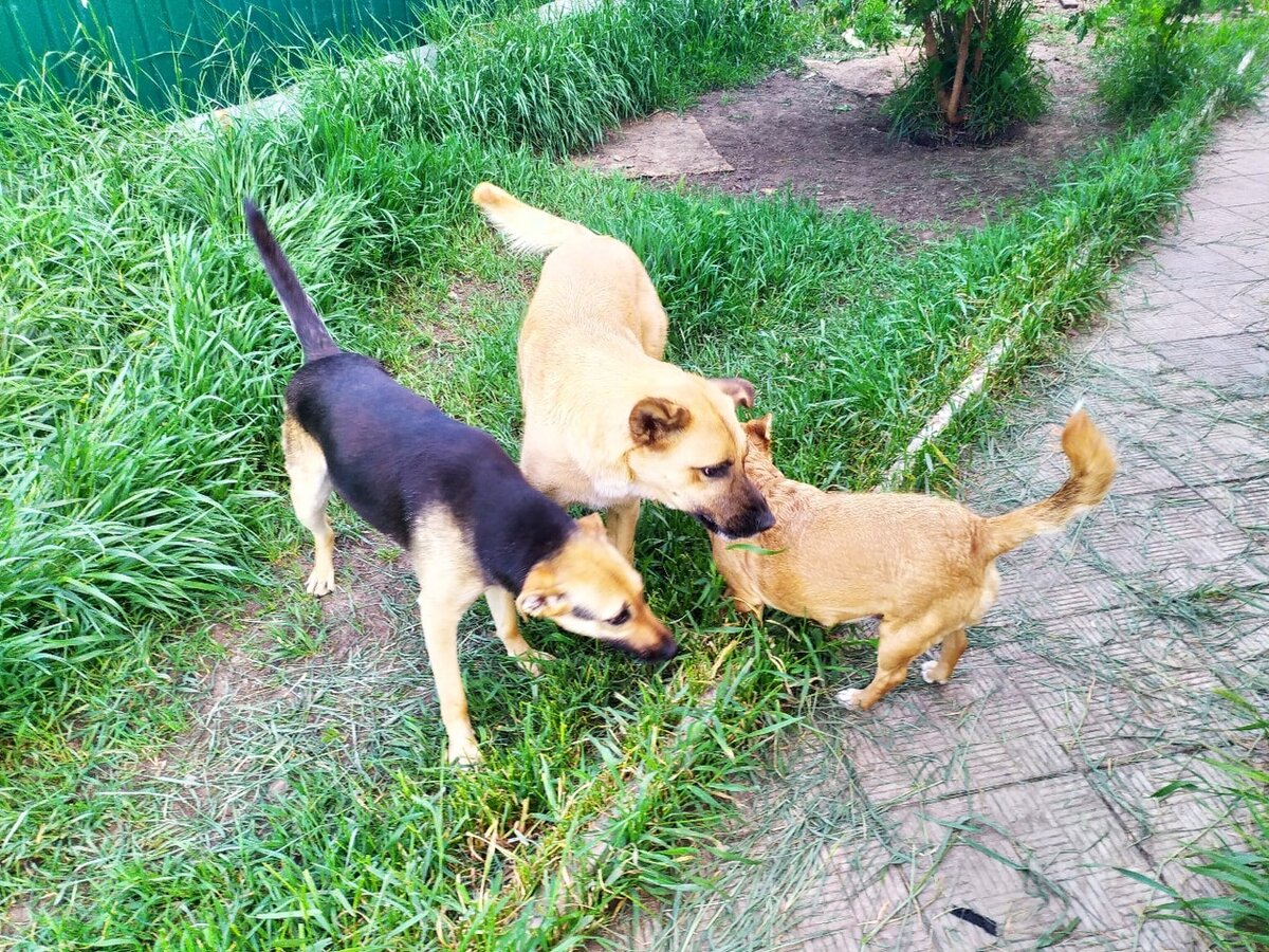 Сегодня волонтеры домашнего мини-приюта Людмилы Ч. пытались убрать немного траву за домом. Выросла она уже высокая после дождей. Бублик и Санта чувствуют там себя как в прериях, наделали тропинок и бегают. Это их царство!) А вот для Фокси настоящий лес, чуть не заблудилась она в этом зеленом лабиринте. Собани хорошо встретили миниатюрную собачку, встретили, обнюхали и главное позвали с ними побегать) Фоксюша молодец такая, находит всегда и со всеми общий язык. А главное всегда сопровождает хозяйку и активно помогает ей!)
