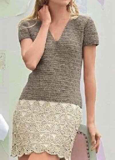 1. Шикарное летнее платье с ажурной юбкой, связанное крючком, отличный наряд для тёплой погоды. Связать такое платье своими руками не так уж и сложно, как кажется на первый взгляд. Приведённое описание и схемы помогут выполнить его даже начинающим рукодельницам.