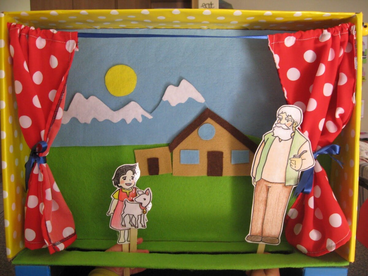 Здравствуйте, уважаемые читатели! Что-то я глубоко втянулась в поиск идей для развиваюших игр и нашла столько замечательного! Спешу в очередной раз поделиться с вами! Когда я была маленькая, я накидывала простыню поверх натянутой веревки, мастерила персонажей из всего, что есть под рукой (лучше всего помню бармалея, у которого была голова из картошки, а усы из бабушкиной чёрной пряжи), рисовала афишу, билеты и ждала зрителей в лице домочадцев. В сегодняшней подборке - ещё более оригинальные и яркие идеи. И пусть ваш ребёнок создаёт этот мирок вместе с вами или сам на ходу придумывает сюжет, и то, и другое - прекрасно! 17. Домашний театр. В качестве сцены можно использовать адаптированную и украшенную коробку со специальной прорезью, с ровной сценой или с ширмой (см. фотографии ниже). И не забудьте про занавес! Также в качестве сцены можно использовать просто поверхность стола. А ниже приведены варианты, как и из чего можно мастерить персонажей. На последних двух фото - персонажи из фет