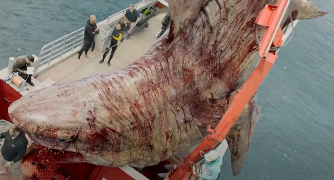 утверждая что она соперничала с кораблем в размерах. Все присутствующие мужчины уже встречали китов и твердо отрицали, что это был кит. Показательным из всего этого может быть тот факт что кожа этой гигантской акулы соответствовала призрачно белому цвету акулы замеченной в 1918 году.