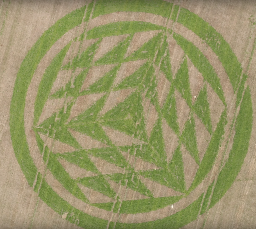 Рисунок появился на убранном поле в Гемпшире, Великобритания. Рисунок стал виден в результате того, что выросли новые, зеленые побеги несмотря на то, что это конец октября. На полях нет урожая, деревья меняют цвет и их листья падают на землю перед зимними снегами, а на месте рисунка впервые появившегося 2 месяца назад проросла пшеница. Впервые этот рисунок появился на поле 16 июля 2019 года, а 23 октября 2019 года он появился снова на уже скошенном поле проросла пшеница в этом рисунке воссоздав его вновь. Источник