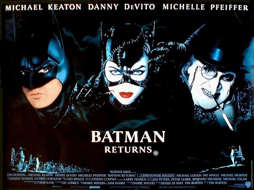 Вторая часть похождений резинового виджиланте вышла через три года после первой и, как ни странно, умудрилась избежать болезни сиквелов - а именно, бессмысленности происходящего на экране (но всё, как говорится, впереди). Бёртон усилил напых мрачняка вкупе с готичностью, продолжая игнорировать тот момент, что вроде бы это должны смотреть ещё и дети. Правильный, надо сказать, подход, позволивший раскрыть пару очень занимательных вопросов.