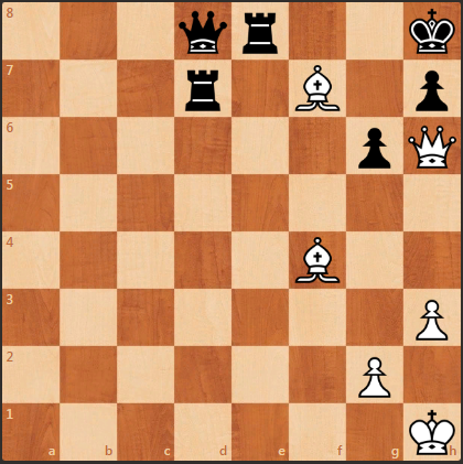 Предлагаю Вашему вниманию очередную шахматную задачу. У белых два слона против двух черных ладей. Преимущество в материальном плане у черных. Однако, ход белых и они выигрывают, ставят мат в 3 хода. Подписывайтесь на канал, интересные задачи ежедневно Решение идет далее, более сложную задач смотрите тут>>> 1. Белые отдают ферзя на f8 1. ....черные бьют ладьей на f8 2. Белые дают шах слоном на е5, черные могут закрыться ферзем на f6. и после взятия ферзя белым слоном, мат. В итоге, на шахматной доске получаем позицию, когда два белых слона сильнее, чем черный ферзь и две черные ладьи.
