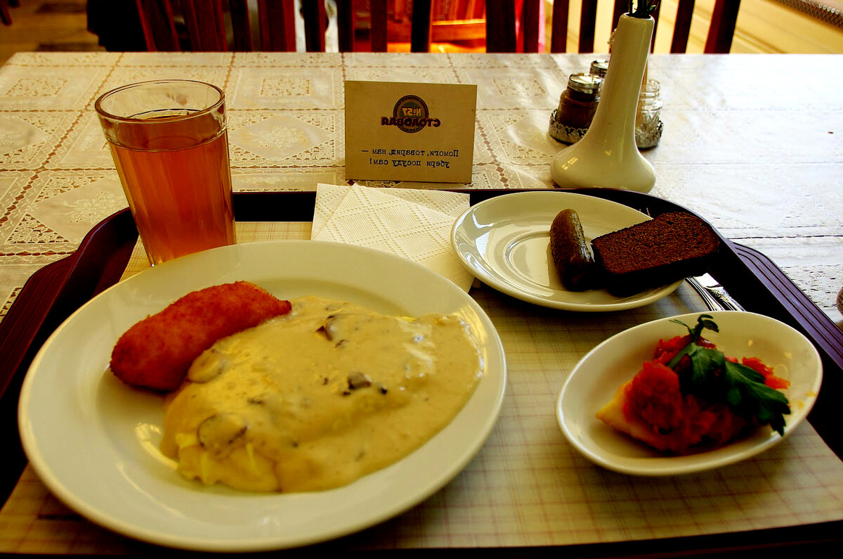 Столовые советских времен - это одна из постоянных тем для общения. Трехразовый обед на пластиковом подносе, состоящий последовательно из супа, макарон с сосисками и компота. Вопреки тому, что тогда обеспечение продуктами питания людей, живших в те времена, создает ощущение ностальгического ужаса, в настоящее время открывается все большее количество забегаловок в советском стиле. Сейчас очень элегантно оскорблять Mcdonald's и любую дешевую еду. Какие же прозвища только не придумывают гамбургерам. Но кто бы что ни говорил, мнение большинства людей состоит в том, что человек, смогший выжить в СССР, сможет прожить, питаясь абсолютно любым фастфудом. Кстати, есть много тех, для кого хлебные котлетки были самой восхитительной роскошью в их юности. Очевидно, для таких ностальгических персонажей и появляются заведения а-ля СССР, дизайн которых подобран в стиле 50-х годов и меню примерно из того же времени. Нынешняя молодежь поражается отсутствием колы, однако, более взрослым слоям общества