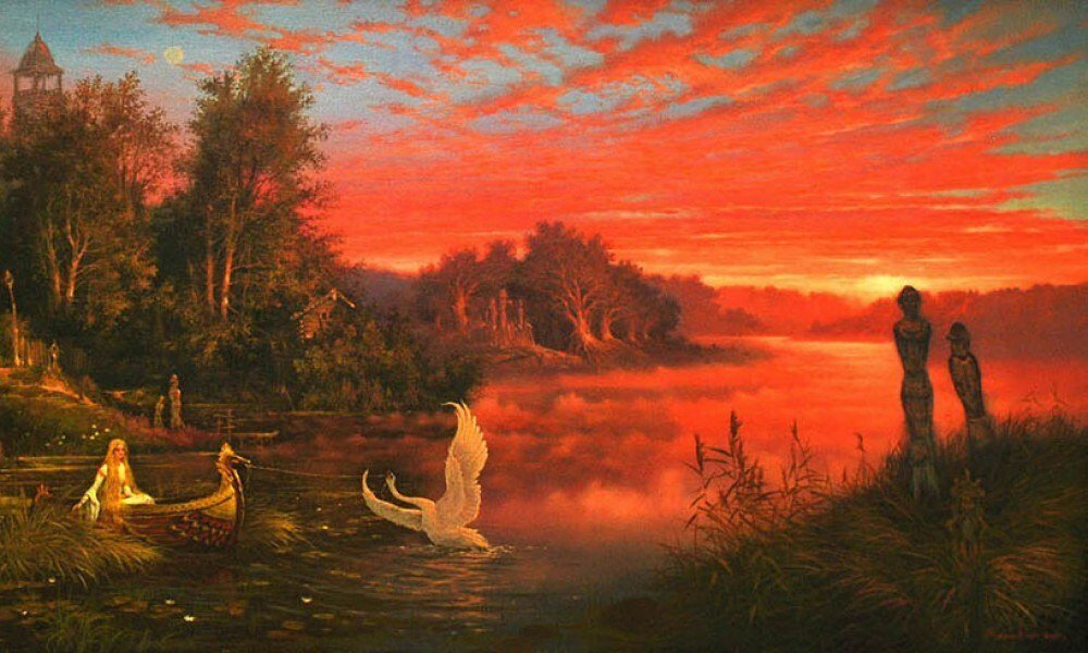 Согласно с наглядным, ежедневно повторяющимся указанием природы Славянские мифы знают двух божественных сестер – Зарю Утреннюю и Зарю Вечернюю; одна предшествует восходу солнца, другая провожает его вечером на покой, и оба, таким образом, постоянно находятся при светлом божестве дня и прислуживают ему. Утренняя Заря выводит на небесный свод его белых коней, а Вечерняя принимает их, когда оно, совершивши свой дневной проезд, скрывается на западе. © Всегда Ваш …