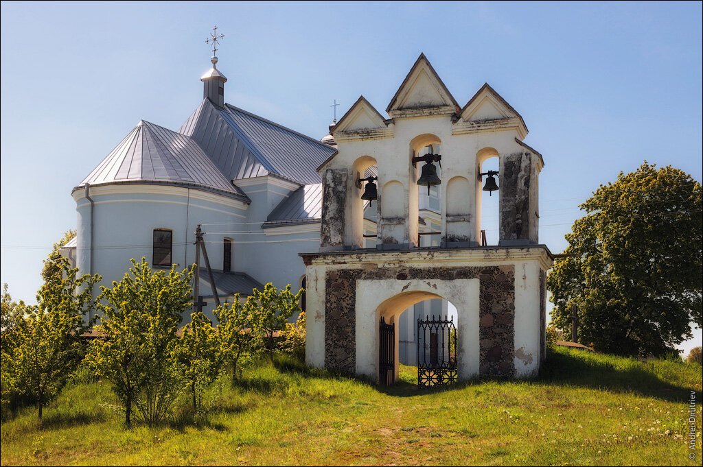 Вишнево - симпатичное и атмосферное место в Воложинском районе. Бывал здесь несколько раз, и всегда оставалось приятное послевкусие от посещения. Да и, кстати, именно отсюда родом Шимон Перес (Семен Перский) — премьер-министр и президент Израиля, лауреат Нобелевской премии. Главной достопримечательностью деревни считается Костел Благовещенский святой Девы Марии. И хоть на фасаде гордо красуется цифра 1424, это не дата постройки, это год основания прихода и деревянного храма, на месте которого в 1637-1641 был возведен каменный. А брама-колокольня вообще построена в середине XIX века. Рядом источник со Святой водой. Снизу от водоема, образованного местной рекой Ольшанкой, храм выглядит еще более монументальный. Вокруг - красота! Местные жители придают пейзажу меланхоличность и спокойствие )) Оглянемся еще раз на костел,.. ... местную живность,.. ... и отправимся ко второй значимой постройке местечка - церкви св. Козьмы и Демьяна. Как водится у нас в Беларуси православные и католические х
